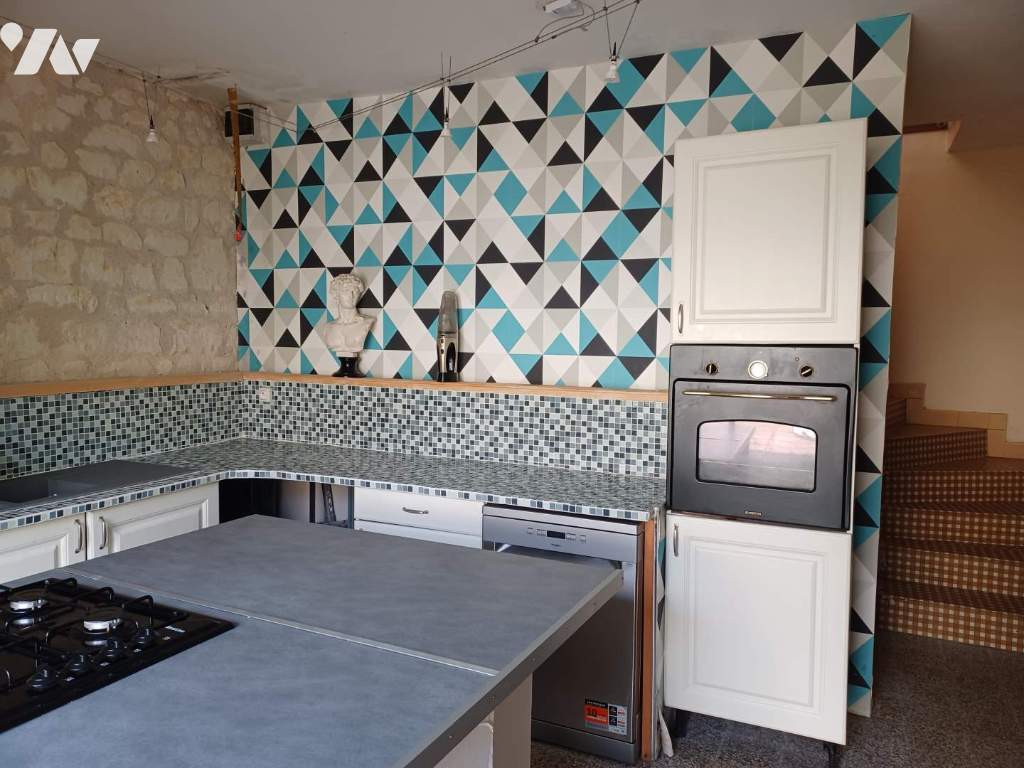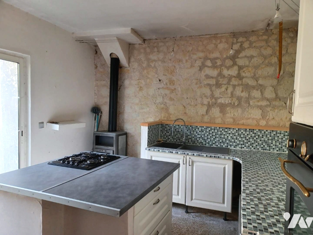 RDC : cuisine aménagée de 15M2 avec poêle à bois, wc, salle d'eau de 5M2-
